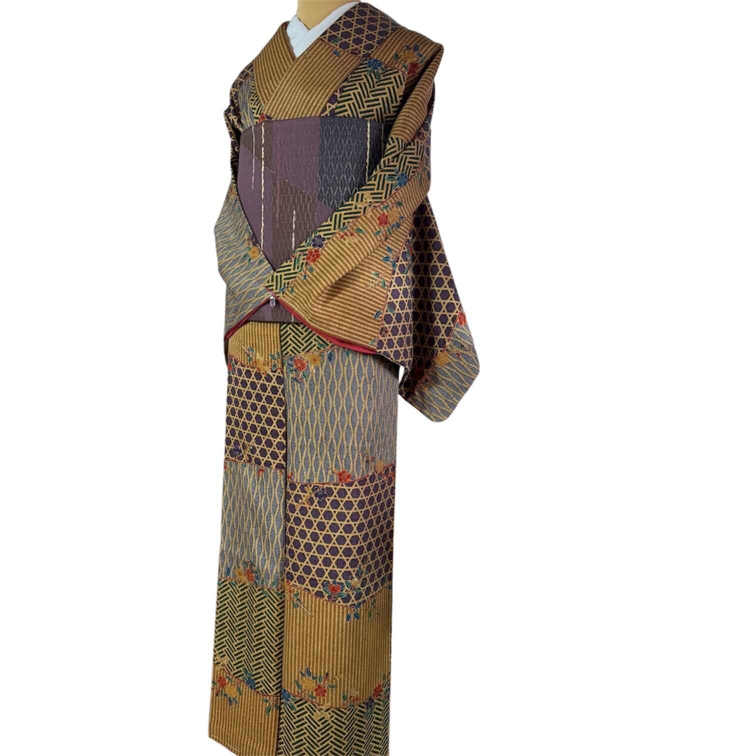 (袷)古典柄のパッチワーク 小紋 作家もの