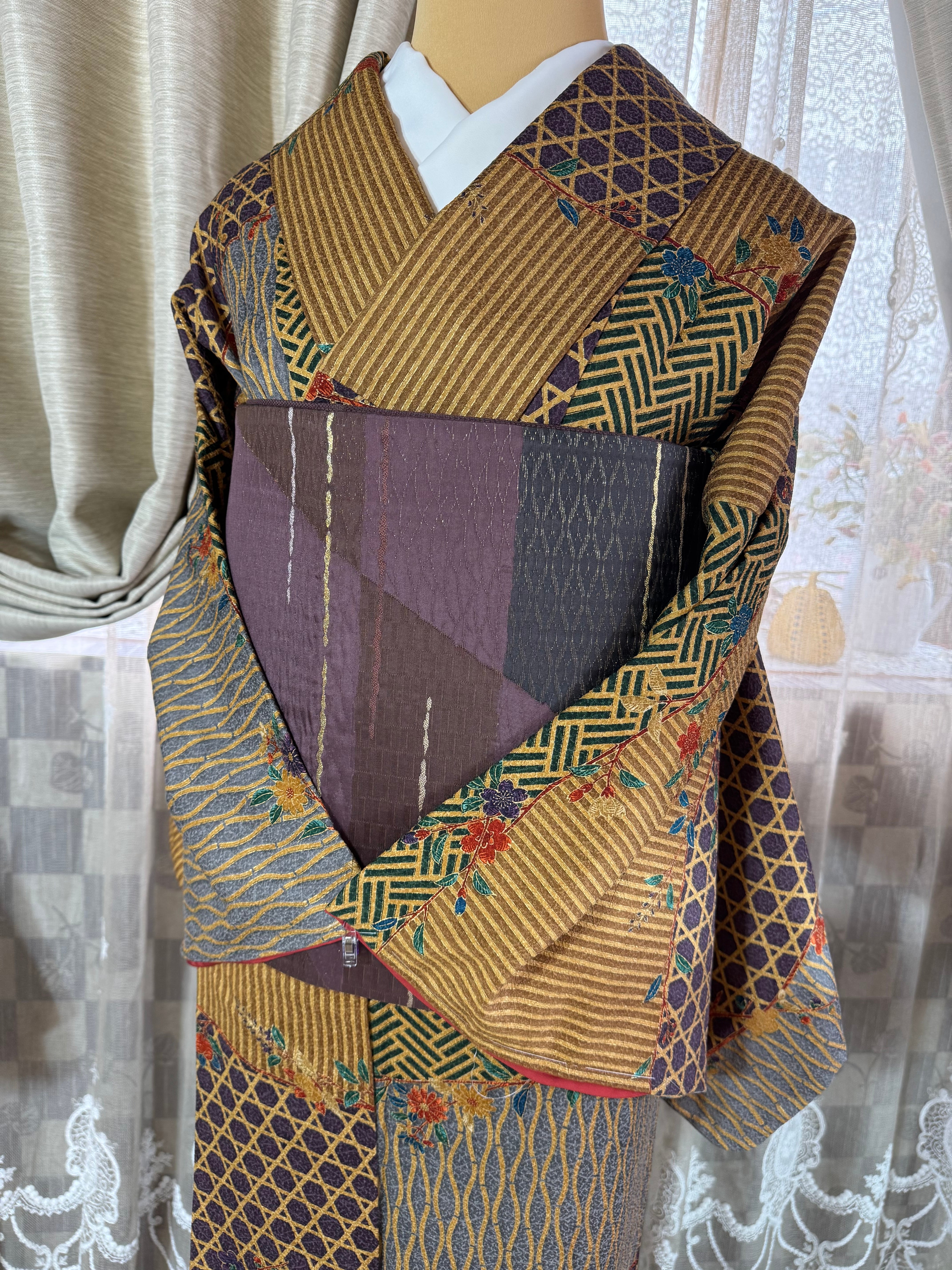 パッチワークのように組み合わせた寄せ小紋に